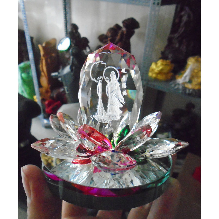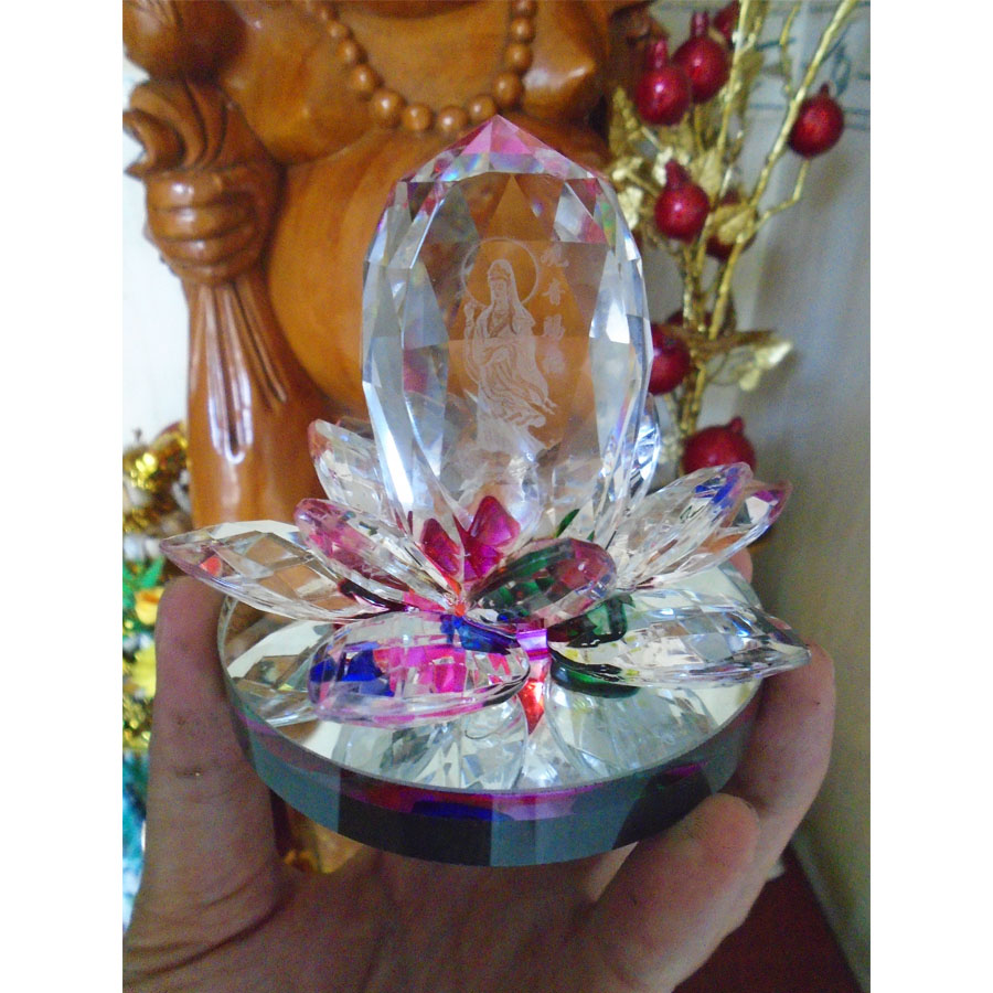 Tượng Phật Bà Quan Thế Âm Bồ Tát hai mặt tọa đài sen vàng đính đá cao cấp trang trí Taplo Ô Tô Xe Hơi Phật giáo sơ khởi duy lý và vô thần,