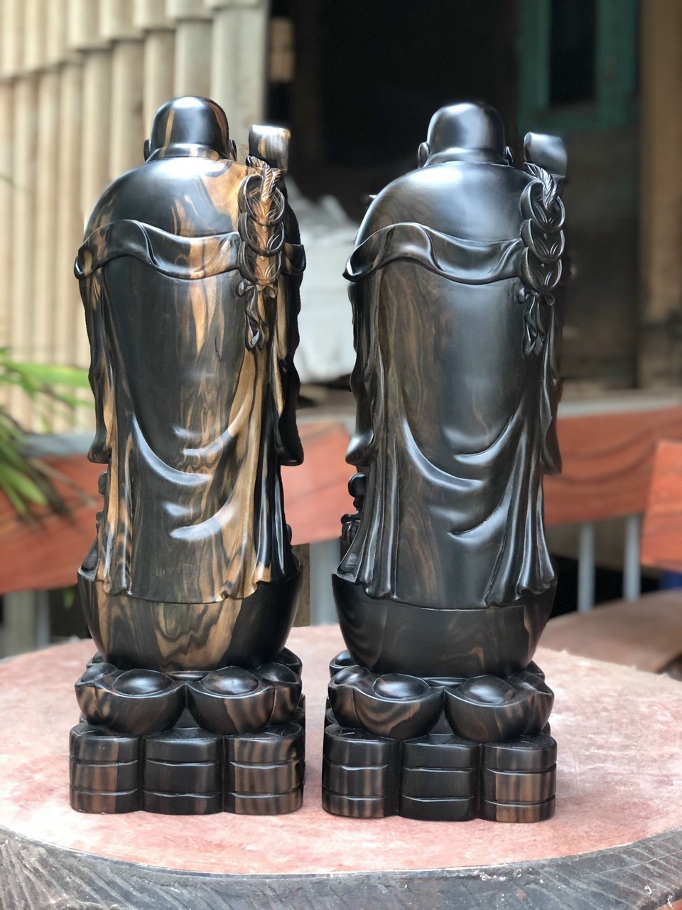 Tượng phật di lặc chúc phúc được làm bằng chất liệu gỗ mun tự nhiên 100% Kích thước cao 60×20×15cm _ Tượng phật di lặc chúc phúc được trạm khắc tỉ mỉ tinh sảo kỳ công. Từ những người thợ dầy rặn kinh nghiệm cũng như tay nghồ cao trong làng nghề truyền thống .Chính vì thế tượng phật di lặc ngũ phúc đã đáp ứng đầy đủ những tiêu trí ( Đẹp bền rẻ ) Thẩm mỹ nghệ thuật với chất lượng tuyệt vời