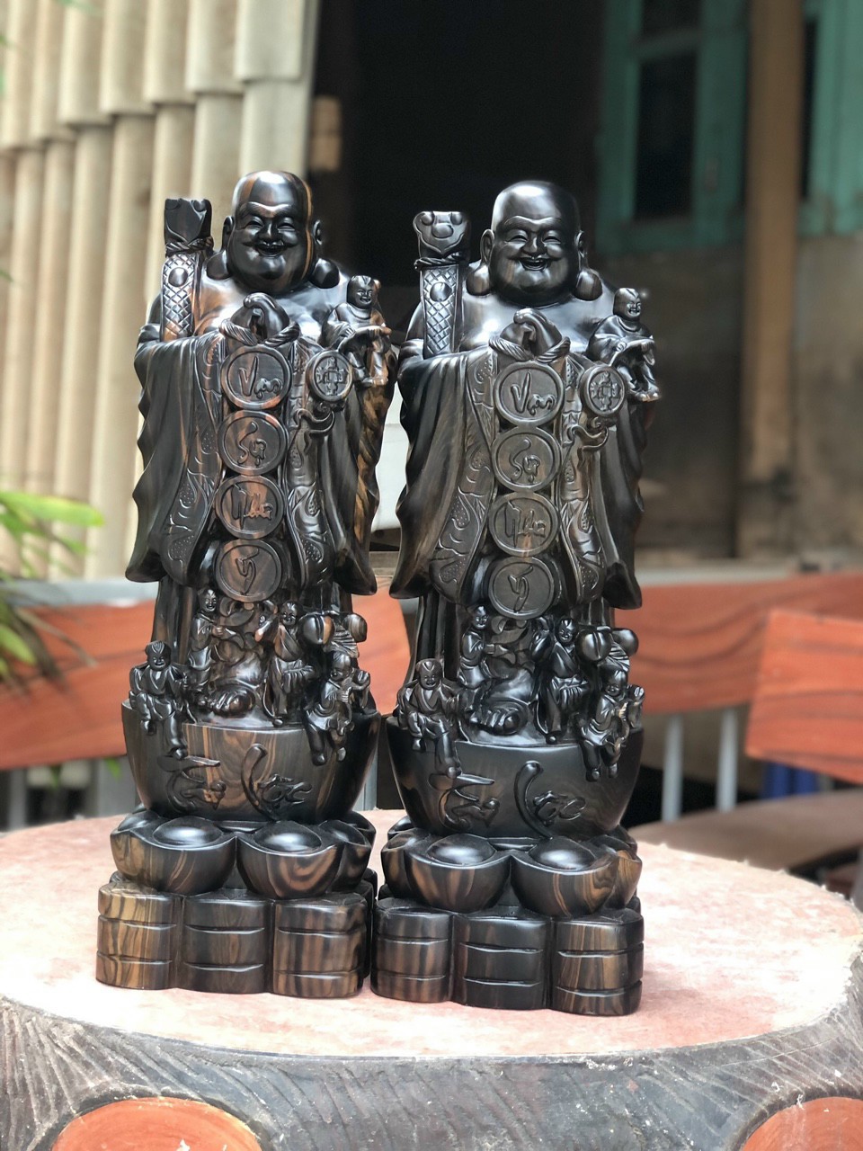 ✨Tượng phật di lặc chúc phúc bằng gỗ mun kt cao 60×20×15cm