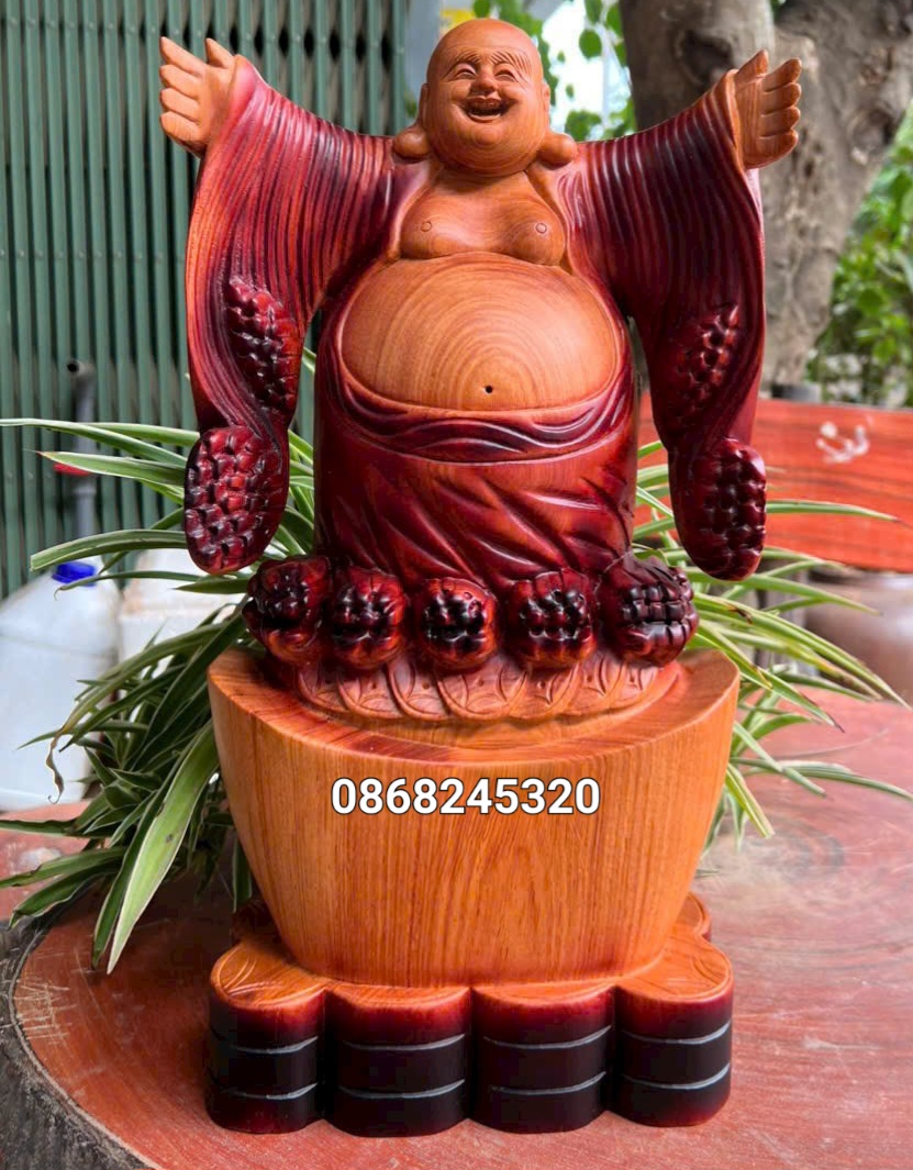 Mua tại TiktokTượng Phật Di lặc nghênh hỷ được làm chất liệu gỗ hương đá liền khối tự nhiên 100% ,Và được sơn pu giả cổ Kt cao 50×26×12cm _ Tượng được khắc tỉa tỉ mỉ, tinh xảo kỳ công .Từ những người thợ giàu kinh nghiệm cũng như tay nghề cao trong làng nghề truyền thống.