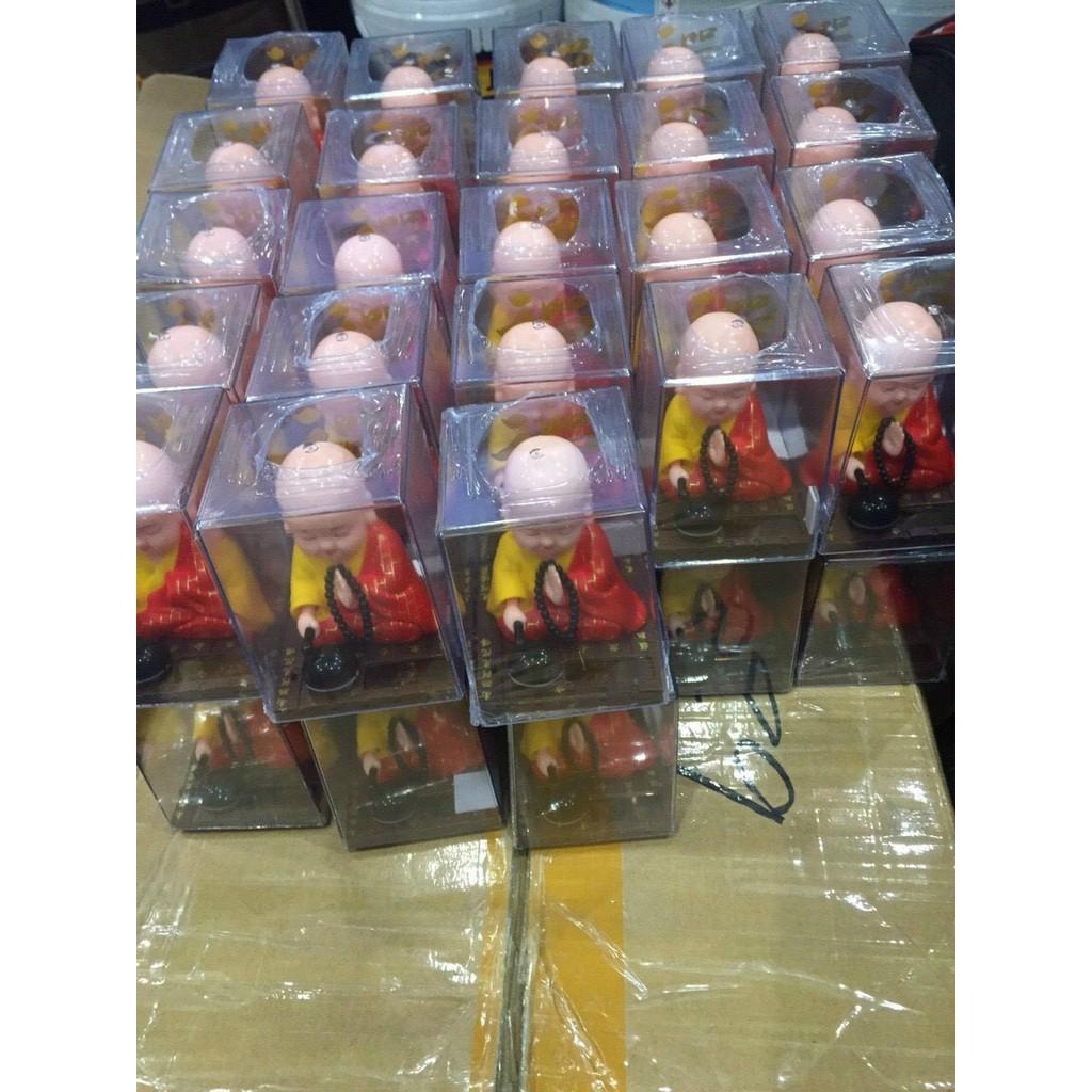 Tượng Chú Tiểu Gõ Mõ Tụng Kinh, Thầy Chùa Gõ Mõ Trang Trí Ô Tô Xe Hơi Năng Lượng Mặt Trời