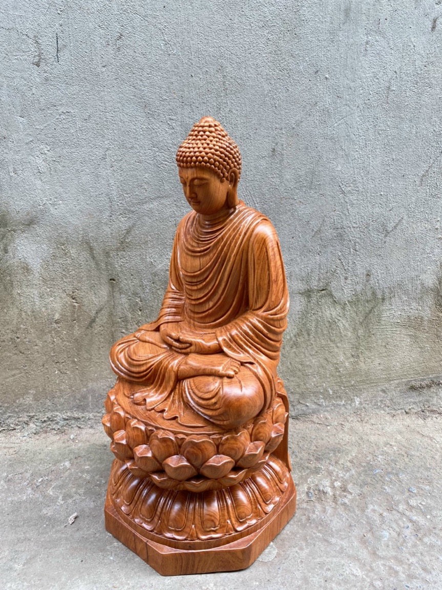Tượng phật a di đà cao 40cm chất liệu gỗ hương đá