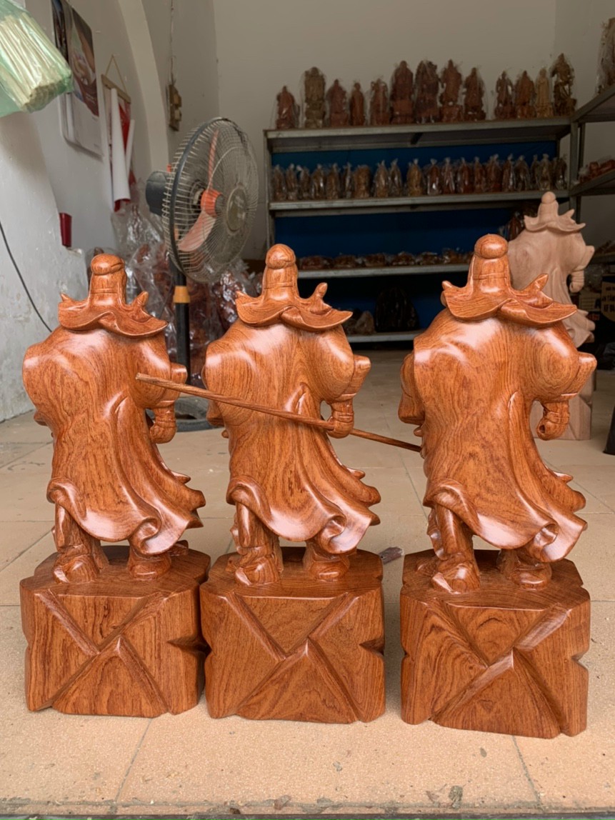 _ Tượng quan công sách đao được trạm khắc vô cùng tỉ mỉ ,tinh sảo kỳ công .Đi hầu hết tất cả mọi chi tiết góc ngách nội dung hoa văn của tượng đều được gọt tỉa chỉnh sửa sắc nét hoàn toàn bằng tay thủy công .Đồng thời tranh được kiểm định kỹ lưỡng khắt khe .Như cho vào thẩm sấy cho gỗ khô kiệt .Mục đích trống dập nứt vênh mo mối mọt ,kết hợp với trà nhám đánh giấy giáp nhiều nước ,sờ mát lạnh .Rồi cho vào phun lót làm bóng mờ để giữ lại mầu sắc vân gỗ tự nhiên .Tượng được làm và hoàn thiện do bàn tay khối óc tài hoa từ những người thợ dầy rặn kinh nghiệm .Cũng như tay nghề cao trong làng nghề truyền thống .Chính vì thế tượng quan công sách đao đã đáp ứng đầy đủ mọi tiêu trí cần thiết như ( Đẹp bền rẻ) Thẩm mỹ nghệ thuật với chất lượng tuyệt vời