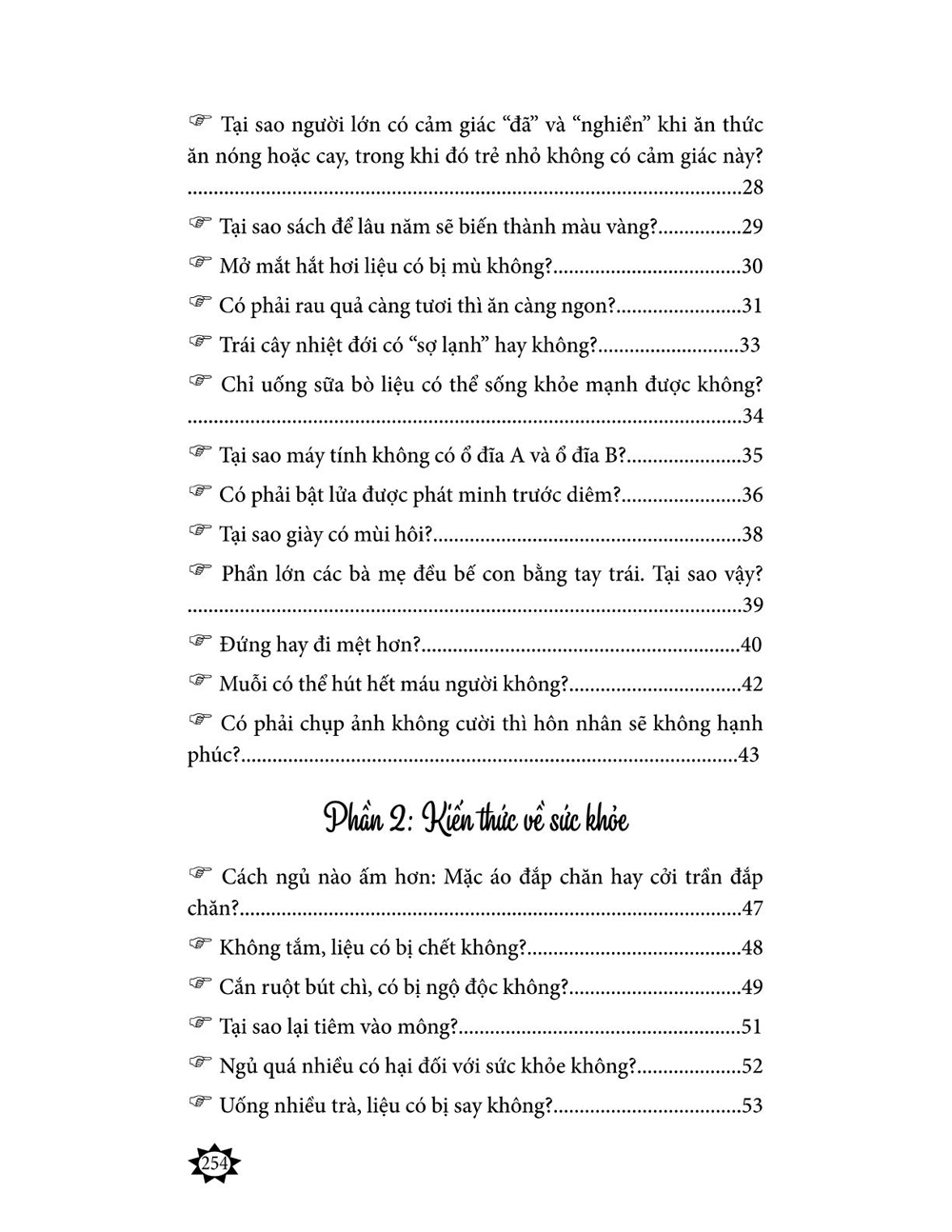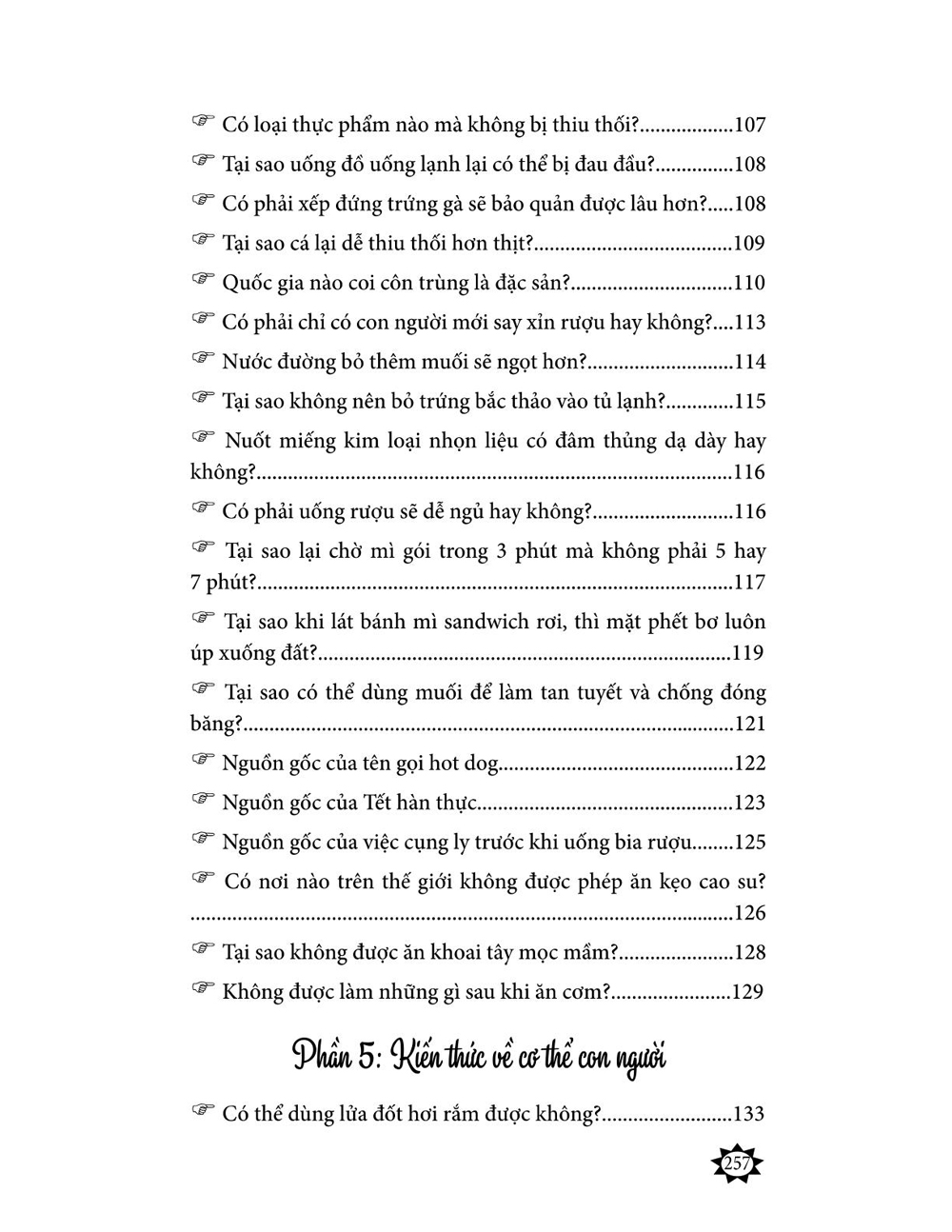 Sách cung cấp các kiến thức về cuộc sống, sức khỏe, động vật, ẩm thực, cơ thể con người, giải trí, lịch sử, văn hóa, khoa học kỹ thuật, về thế giới…nhằm giúp chúng ta phong phú hơn vốn sống của mình hơn, chiêm nghiệm những điều trường học không dạy nhưng rất cần thiết trong công việc và cuộc sống. Trường học dạy chúng ta rất nhiều điều cần thiết cho công việc và cuộc sống nhưng kiến thức sẽ không bao giờ đủ cả, đặc biệt là những kỹ năng mềm.