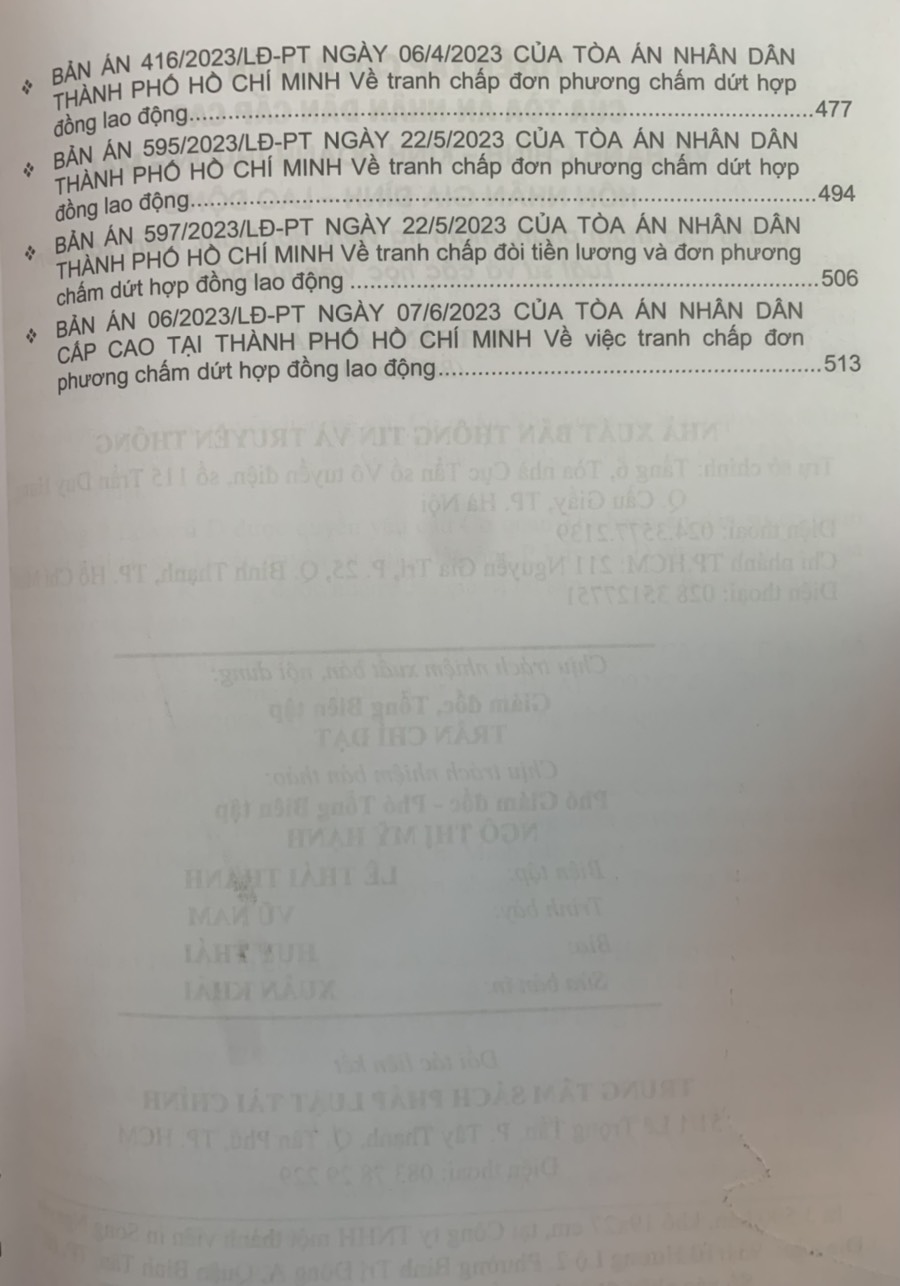 Phần thứ tư. Các Bản án của Tòa án nhân dân cấp cao về lao động