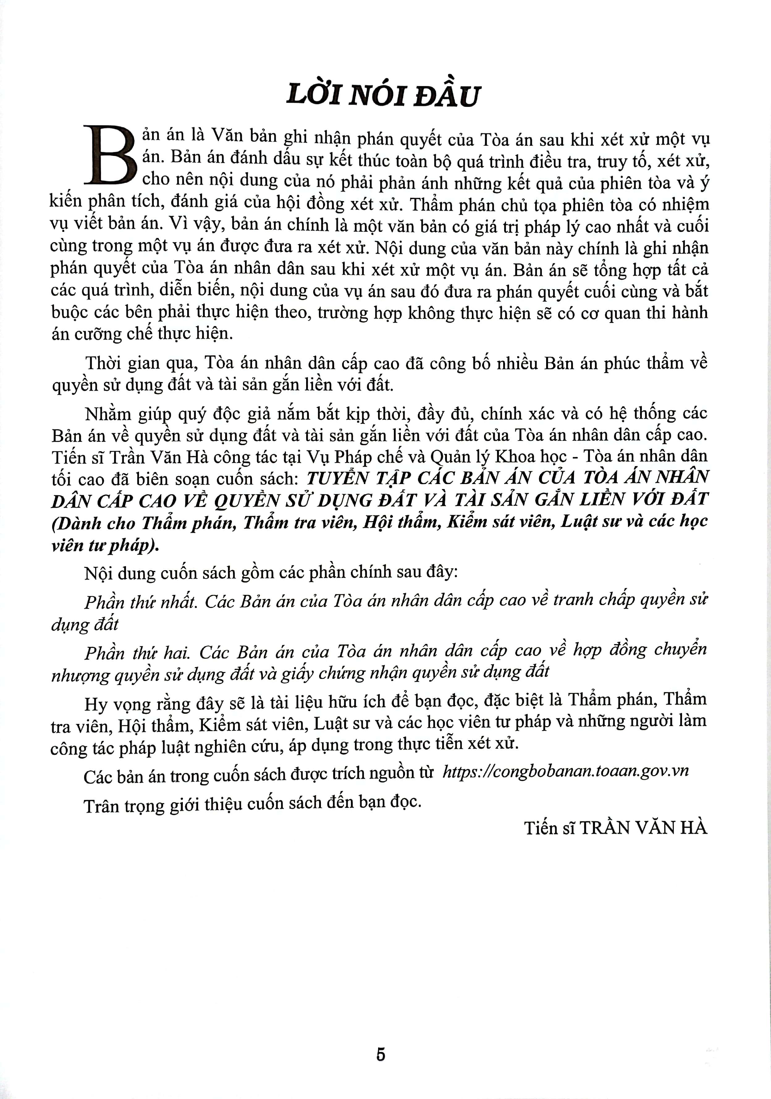 Tuyển Tập Các Bản Án Của Tòa Án Nhân Dân Cấp Cao Về Quyền Sử Dụng Đất Và Tài Sản Gắn Liền Với Đất (Dành Cho Thẩm Phán, Thẩm Tra Viên, Hội Thẩm, Kiểm Sát Viên, Luật Sư Và Các Học Viên Tư Pháp)