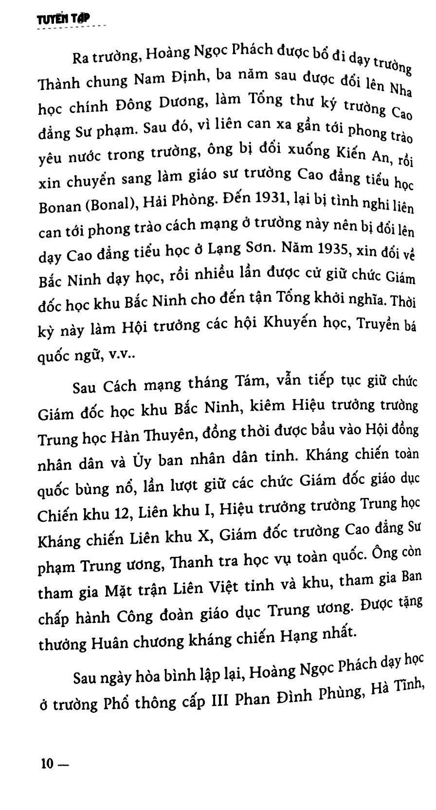Tuyển tập Hoàng Ngọc Phách lần này làm theo ấn bản đầu do NXB. Văn học thực hiện năm 1989, được Nguyễn Huệ Chi sưu tầm, biên soạn, giới thiệu. Tuyển tập Hoàng Ngọc Phách là một trong những tác phẩm mà Sống (Thương hiệu sách Tác giả Việt) đặc biệt tuyển chọn để đưa vào Tủ sách Khuê Văn – tủ sách gồm những áng văn trác tuyệt được ví như những vì tinh tú trong nền văn học Việt Nam.