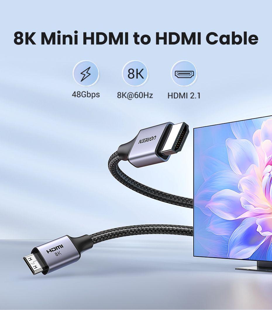 ✨Ugreen UG15515HD163TK 2M 8K60Hz 2.1 Cáp chuyển Mini HDMI sang HDMI dây bọc dù - HÀNG CHÍNH HÃNG