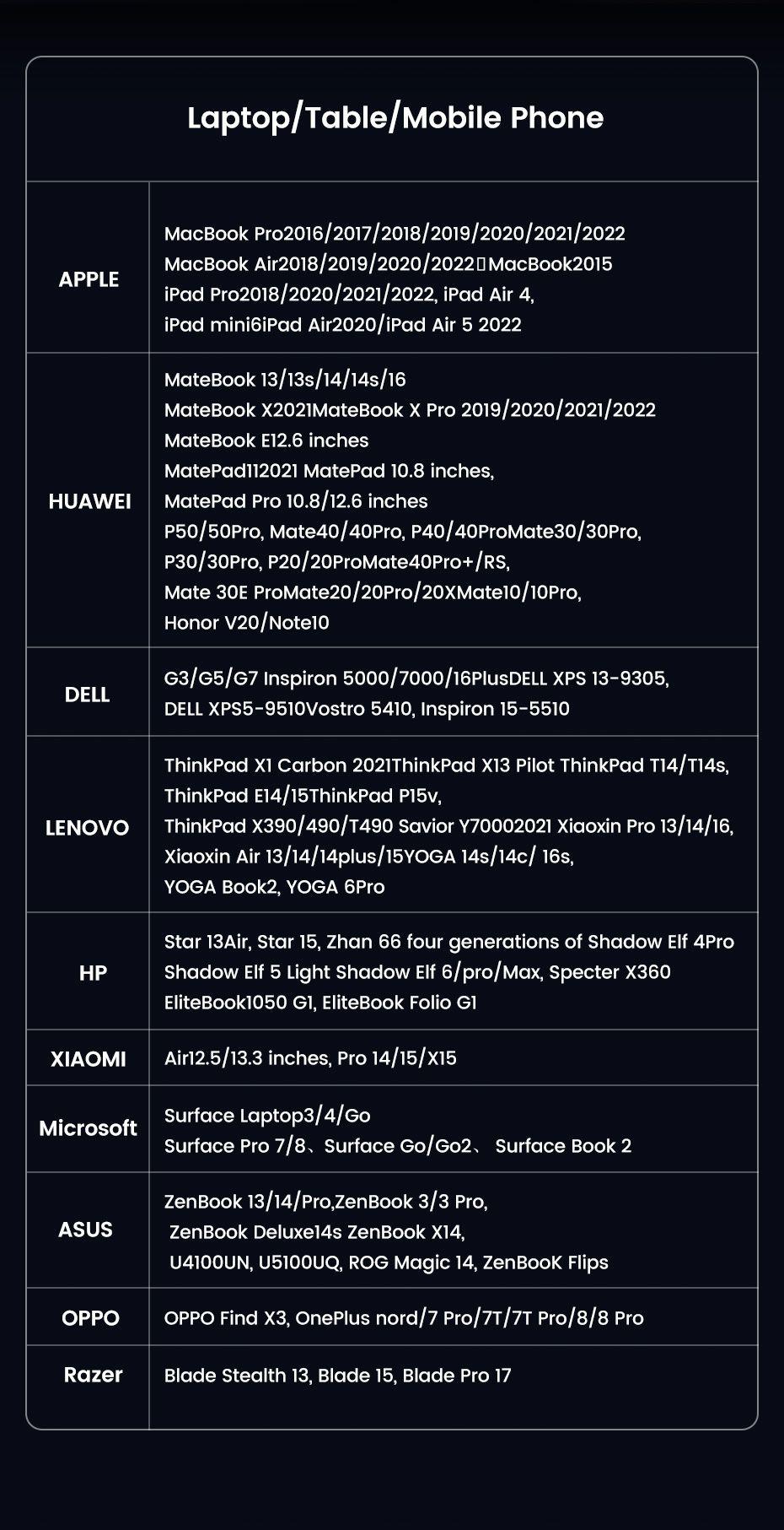 1. Input USB-C 2. Output 2 x USB 3.0, 1 x USB-C, 1 x 4K HDM Port, 1 x SD Card Slot, 1 x TF Card Slot 3. Dimension 115mm x 36mm x 12.5mm 4.