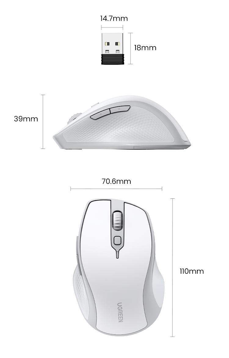 #20|🔵$13-Chuột Không Dây UGREEN đa năng,Bluetooth 5.0 ,Wireless 2.4G,4000 DPI,6 nút cho PC,Laptop