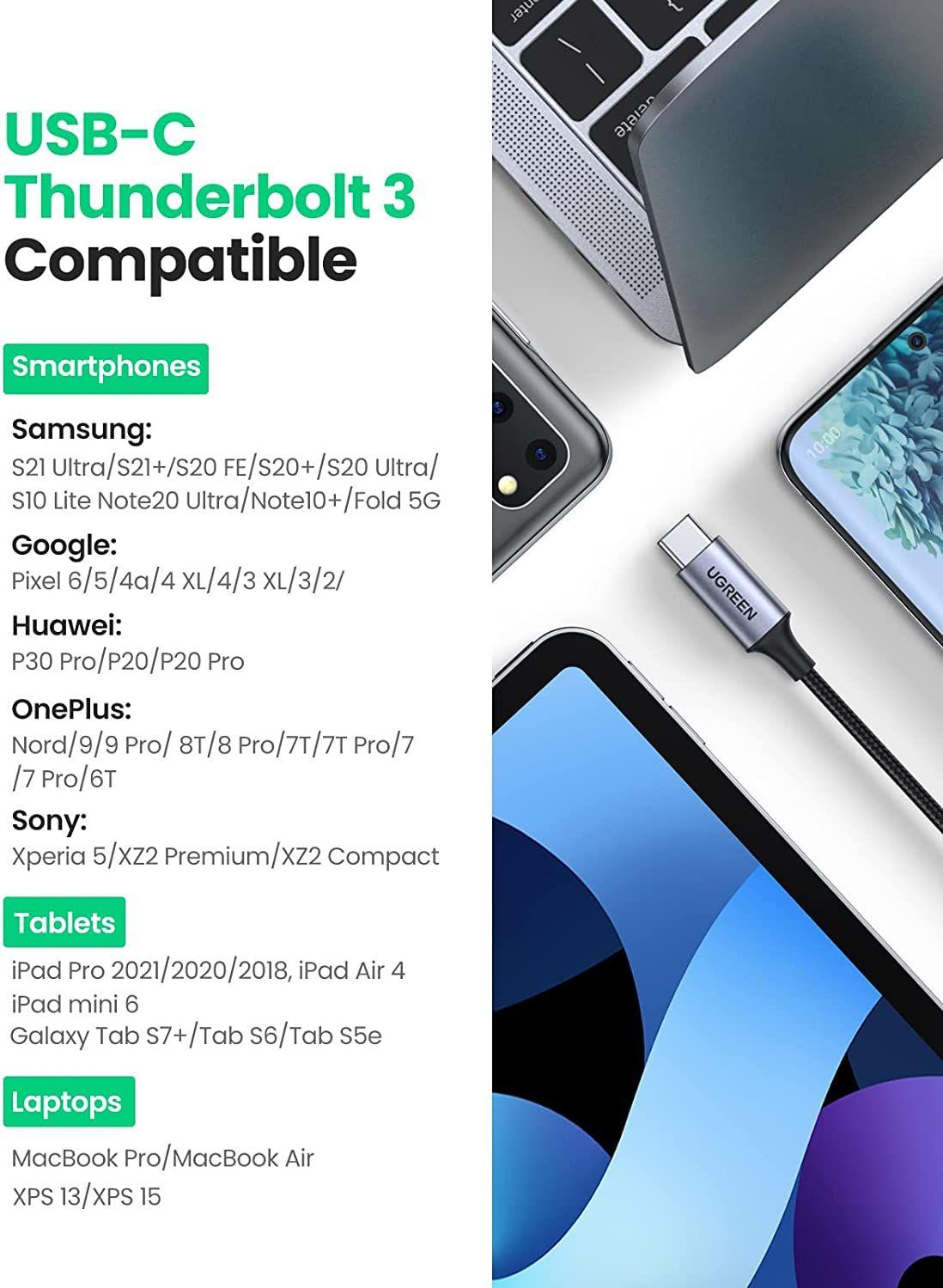1. Hãng sản xuất : UGREEN 2. Mã sản phẩm : 70889 – us378 3. Màu sắc : Xám 4. Truyền siêu nhanh 5. Làm việc mọi lúc và mọi nơi 6. Cáp bện nylon