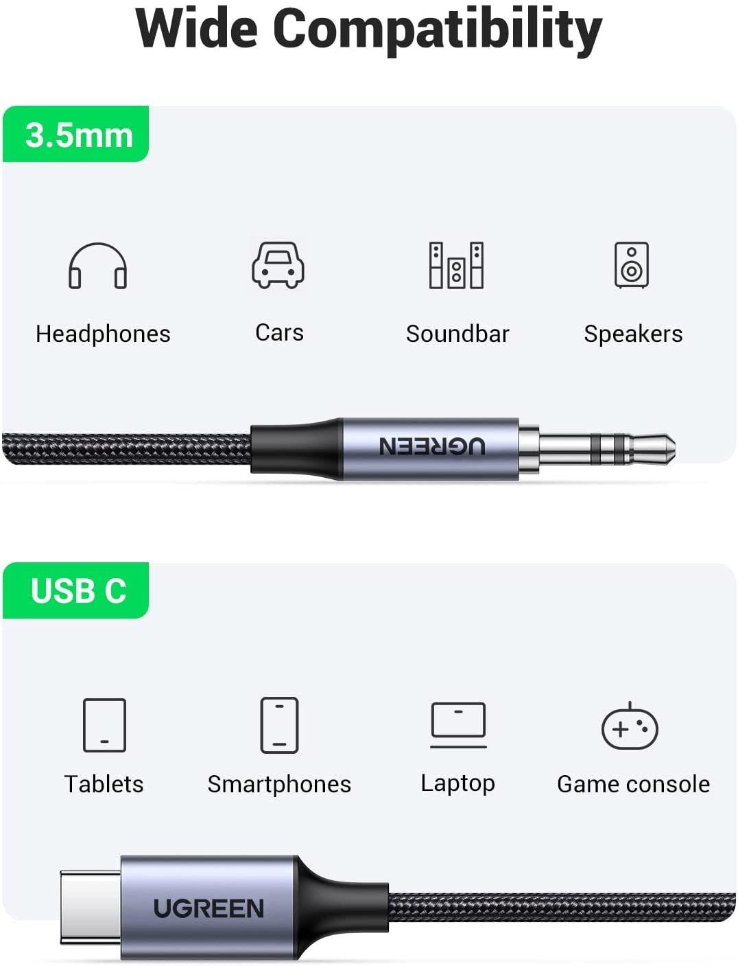 ✨Ugreen UG20192CM450TK 1M Màu Đen Cáp chuyển USB-C sang 3.5mm Dương - HÀNG CHÍNH HÃNG