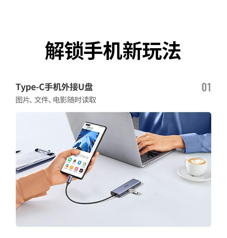 Mô tả Thích hợp cho máy tính và điện thoại di động mở rộng truyền dữ liệu sử dụng cổng type-c, truyền tốc độ cao 5Gbps lý thuyết USB3.0 tiêu chuẩn, mở rộng đa