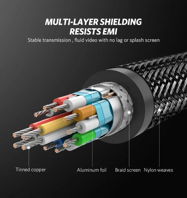 1. 0.5m-2m 30AWG 8K/60Hz OD7.0mm 2. 3m 28AWG 8K/60Hz OD7.3mm 3. 8K@60Hz, 8K@50Hz 4. 4K@120Hz, 4K@100Hz,1080P 5. This 8K HDMI cable support latest HDR (Like Dolby Vision HDR and HDR 10+), Dolby TrueHD Master Audio,