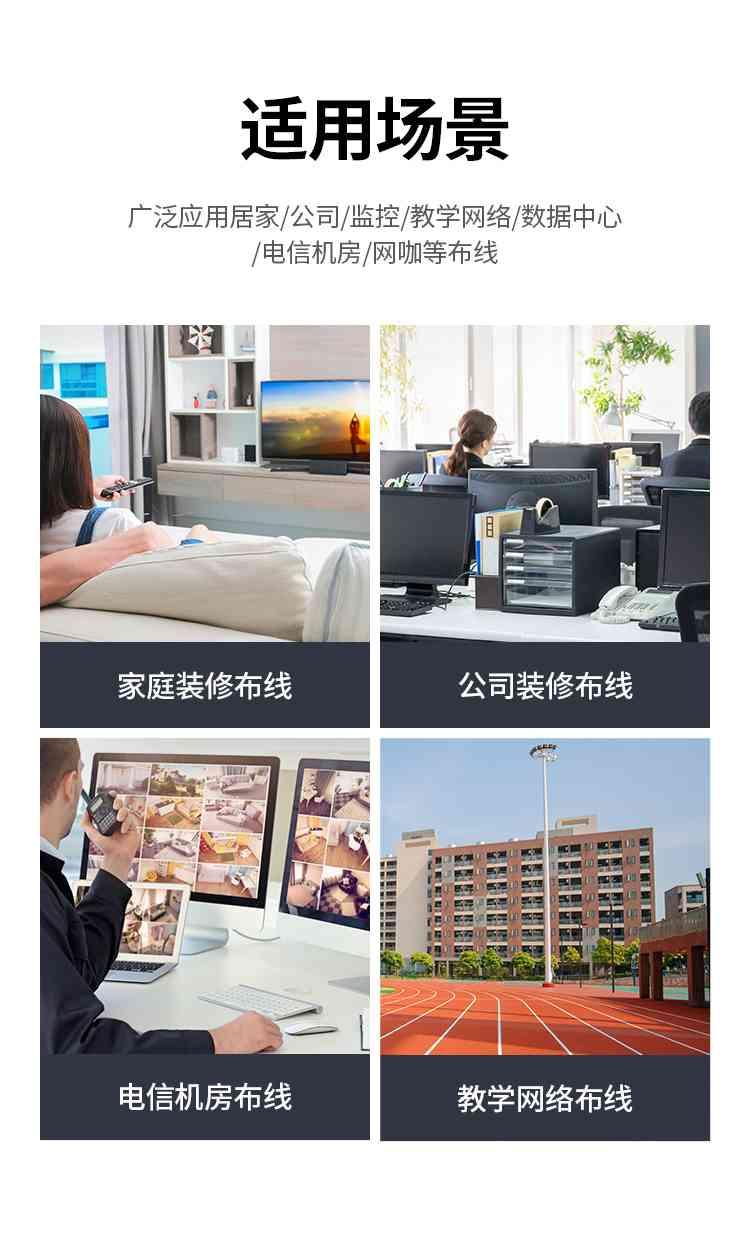 1. Data transfer rate: 10G 2. Frequency: 600MHz 3. 4 shielded twisted pair (U/FTP) of copper wires 4. Pure Copper Core