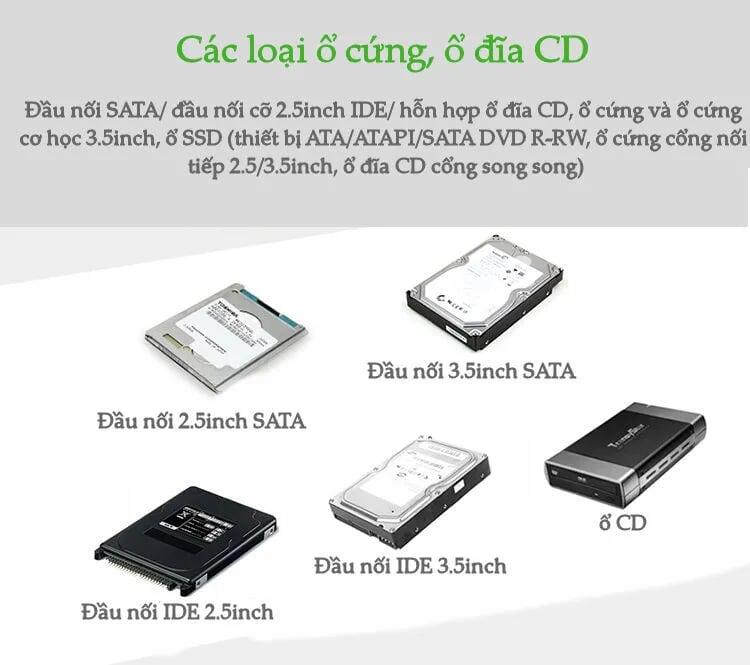 Mua tại TiktokUgreen 30353 usb 3.0 to sata + 3.5 ide + 2.5ide converter us160