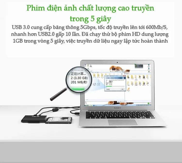 1. Data Transfer: 5Gbps(Max.) 2. Supported Drives: 2.5"/3.5" SATA HDD/SDD up to 12TB 3. Compatible System:Windows 98/2000/XP/Vista/7/8/8.1, Mac OS X 4. The SATA HDD SSD USB 3 Cable is built to travel. The compact and