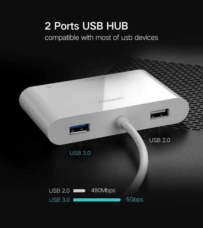 Mua tại TiktokUgreen 30440 15cm type c to hdmi ethenet hub trắng us182