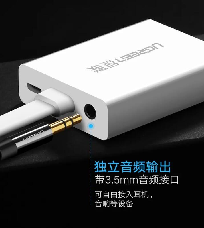 Mua tại TiktokUgreen 40247 Hdmi To Vga + 3.5Mm Audio + Mirco Usb Converter Flat Design TrắNg Mm103