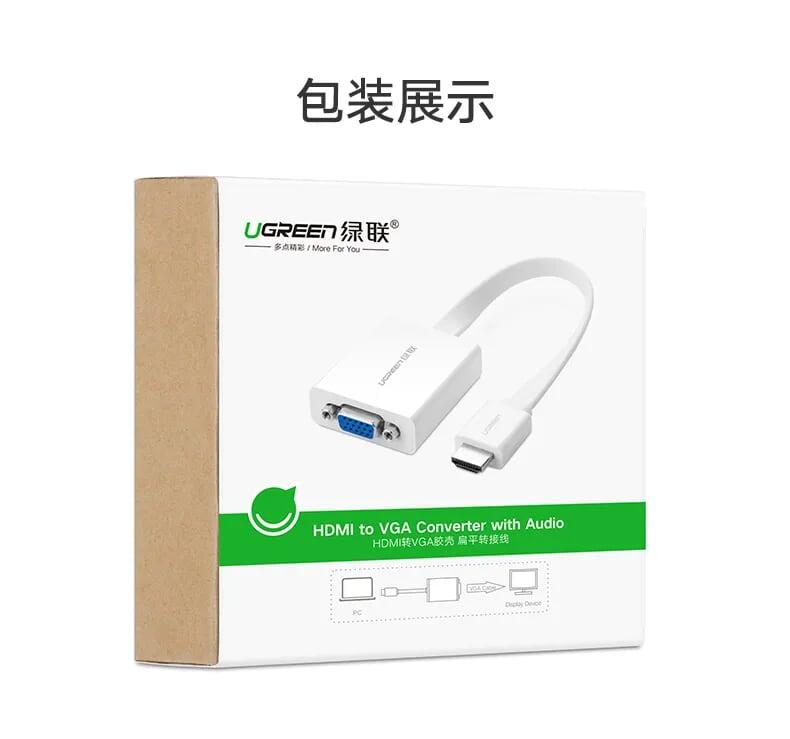 ✨Ugreen UG40247MM103TK Màu Trắng Bộ chuyển HDMI sang VGA dây dẹp kèm cổng âm thanh - HÀNG CHÍNH HÃNG