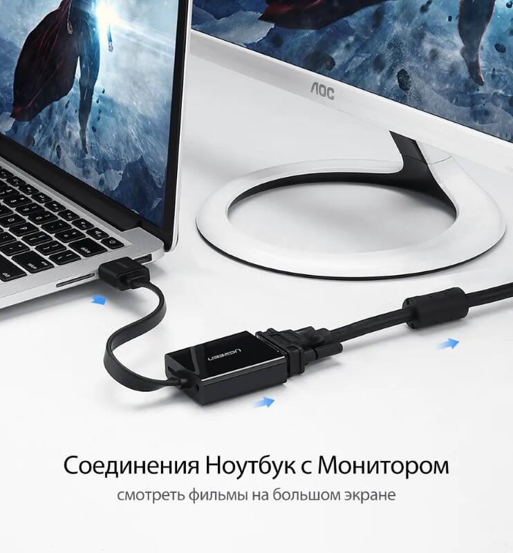 Ugreen 40248 Hdmi To Vga + 3.5Mm Audio + Mirco Usb Converter Flat Design Đen Mm103 1. Features: connect HDMI port device to monitor, projector with VGA port. 2. Cable length: 15CM 3. Wire form: