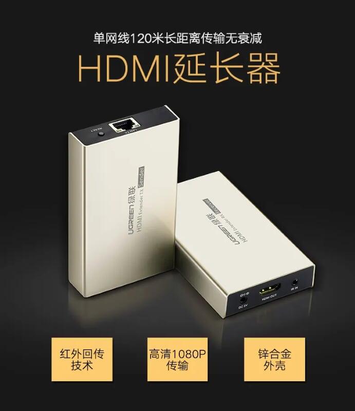 Ugreen 40280 Hdmi Single Extender Transmitter 120M By Cat5E 6 With Ir Control Zinc Alloy Mm116