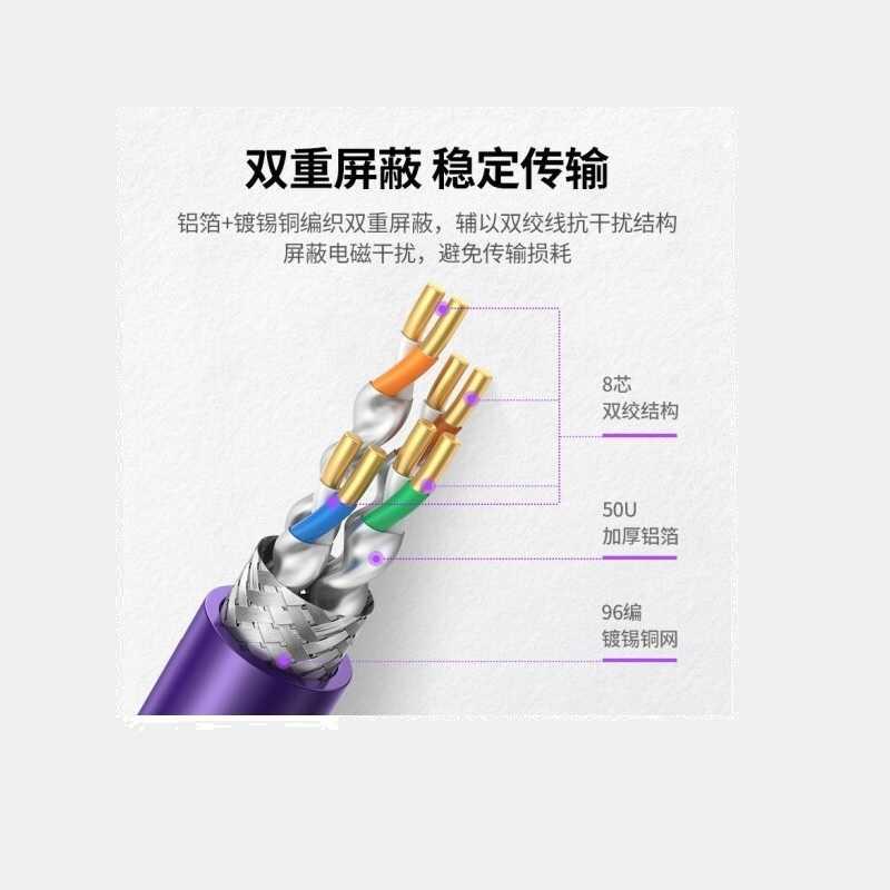 1. Data transfer rate: 10G 2. Frequency: 600MHz 3. 4 shielded twisted pair (U/FTP) of copper wires 4. Pure Copper Core