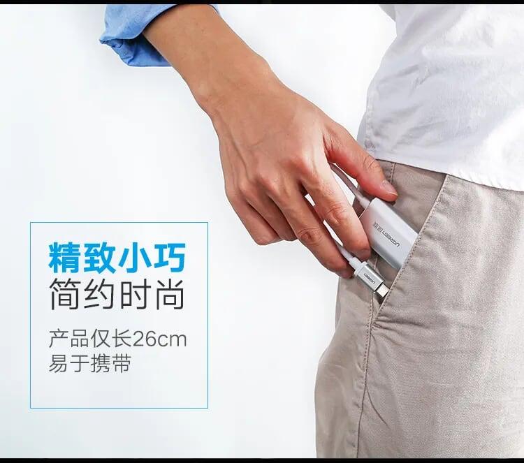 1. Hãng sản xuất : UGREEN 2. Mã sản phẩm : 70889 – us378 3. Màu sắc : Xám 4. Truyền siêu nhanh 5. Làm việc mọi lúc và mọi nơi 6. Cáp bện nylon