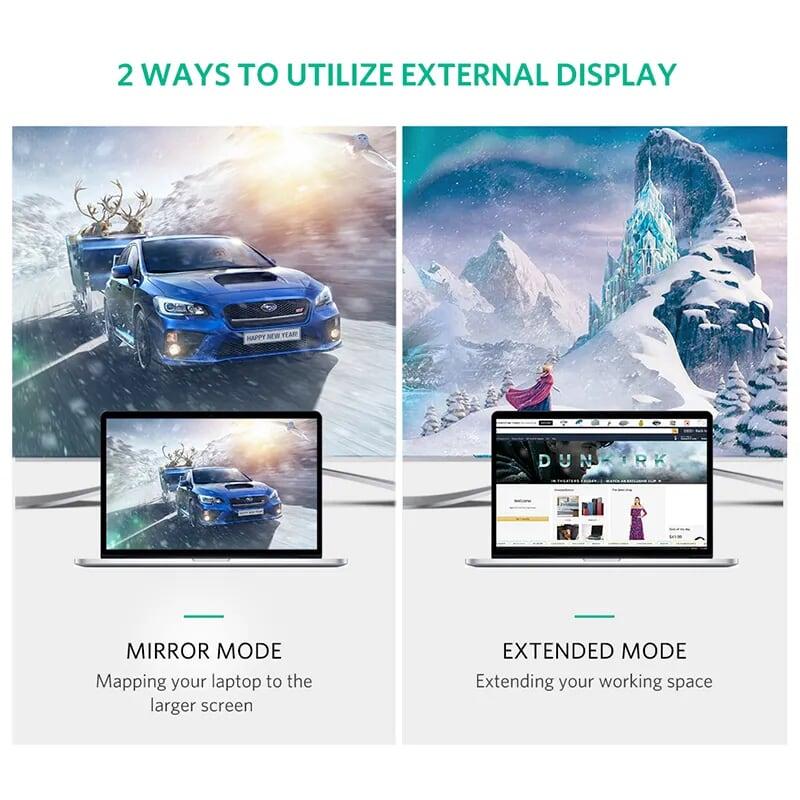 1. Cáp chuyển USB A sang HDMI/ VGA Ugreen 20518 là phụ kiện giúp bạn kết nối PC/ Laptop có cổng USB-A của bạn với màn hình, máy chiếu, TV qua cổng kết nối HDMI