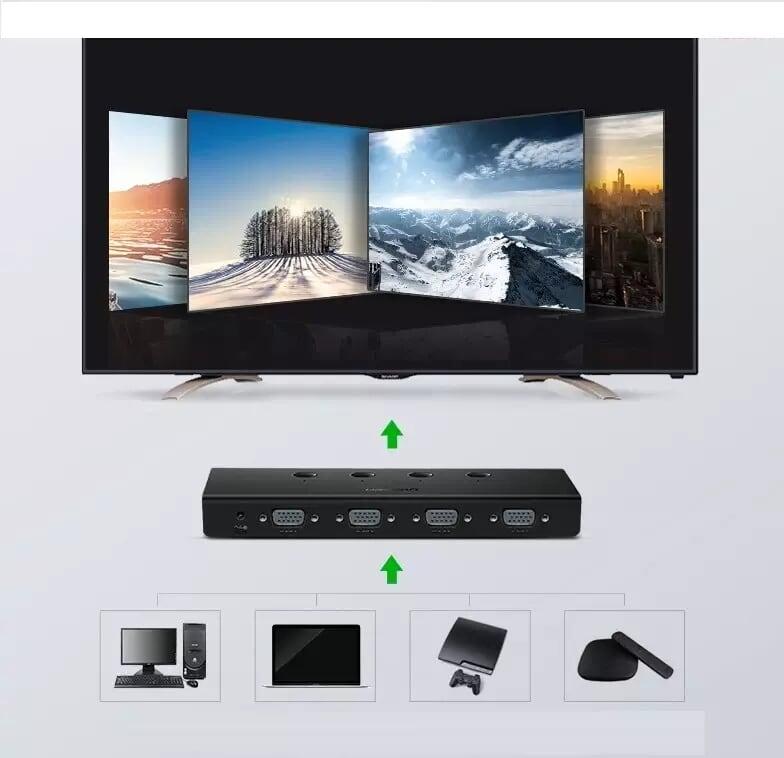 ✨Ugreen UG50279CM153TK Màu Đen Bộ gộp VGA 4 vào 1 ra hỗ trợ FULL HD 500Ghz - HÀNG CHÍNH HÃNG