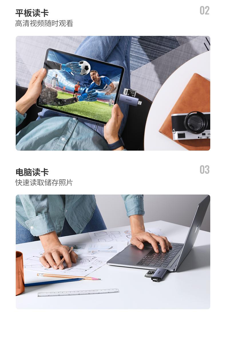 Ugreen 40753 usb 3.0 to tf + sd card readerdual card dual read white cm104 1. Input : USB 3.0 A Male 2. USB 3.0 and compatible with USB2.0 speeds up to 5Gbps 3. Output
