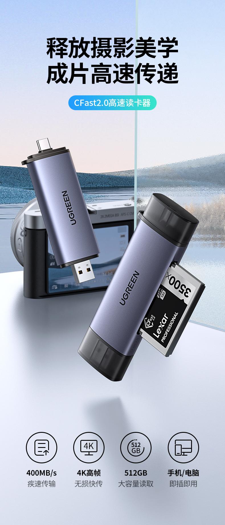 ✨Ugreen UG50906CM517TK Màu Xám Đầu đọc thẻ nhớ 2in1 USB-C 3.1 + USB 3.0 sang SD TF Cfast 2.0 - HÀNG CHÍNH HÃNG