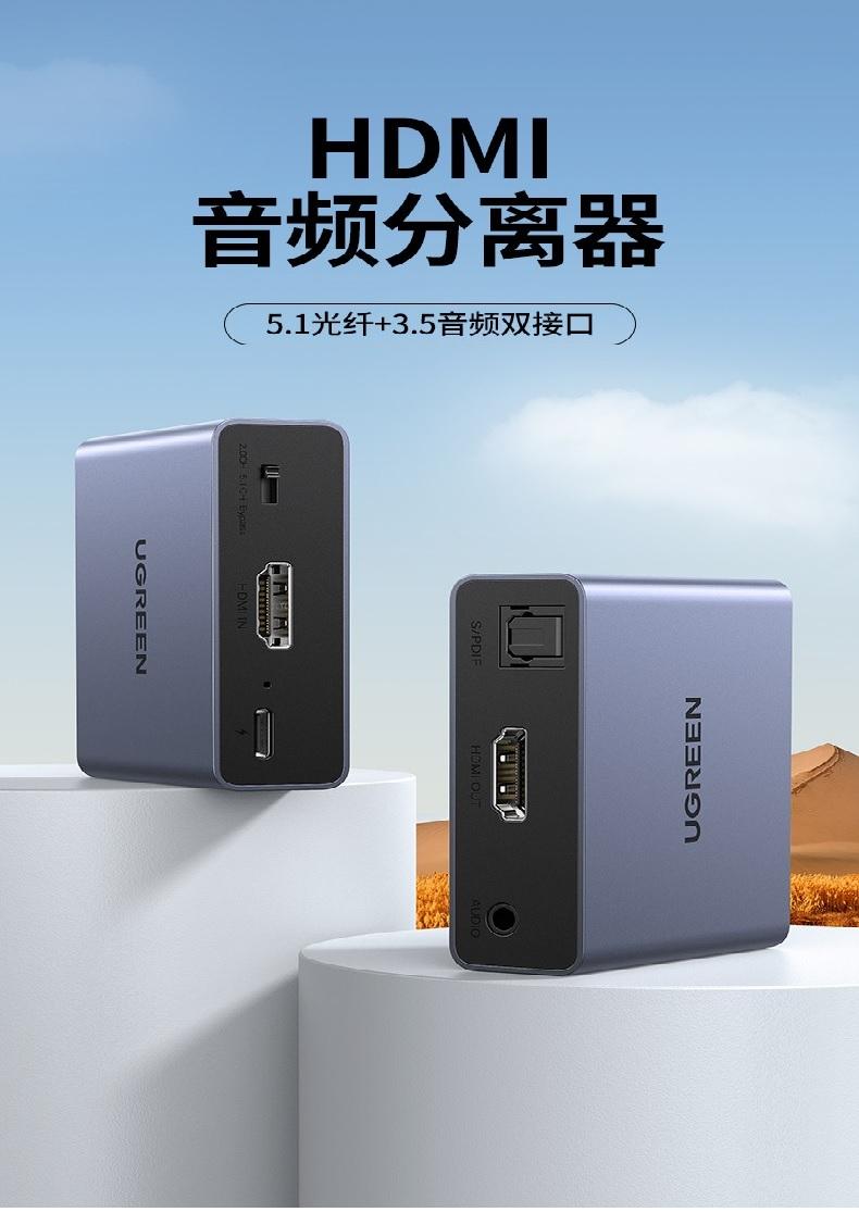 ✨Ugreen UG60649CM531TK 4K @ 30Hz Bộ chia âm thanh hình ảnh HDMI với cổng quang OPTICAL + 3.5mm - HÀNG CHÍNH HÃNG