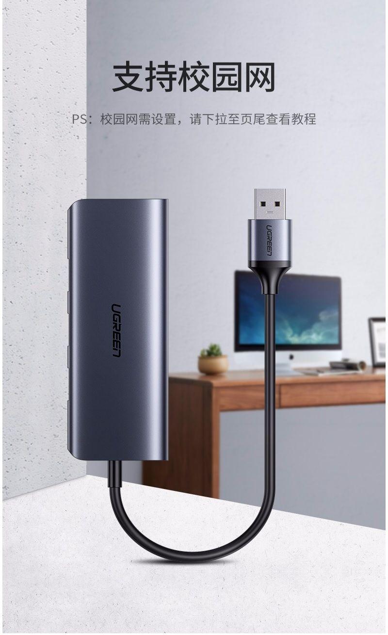 Ugreen 20265 Usb To Rj45 Gigabit With Usb 3.0 Hub Black Cr103 1. USB 3.0 Combo—USB 3.0 Giga Ethernet + 3 ports USB 3.0 Hub 2. Color: Black 3. 150g 4. 20 x 15 x