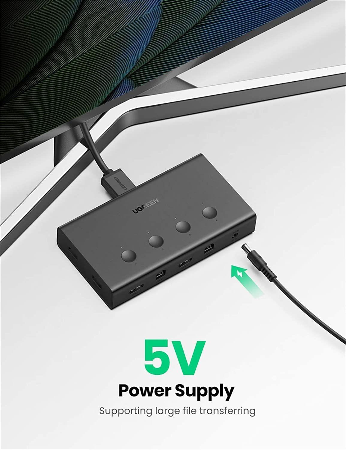 - The Ugreen 70439 HDMI KVM Switch is used to control 4 computers using a single keyboard and mouse via USB 2.0.