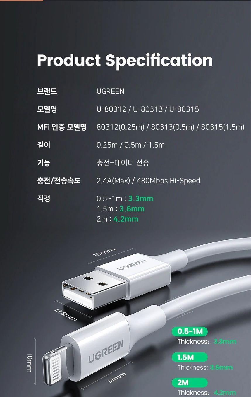 ✨Ugreen UG80315US155TK 1.5M có chip MFI màu trắng Cáp sạc và truyền dữ liệu USB sang lightning - HÀNG CHÍNH HÃNG