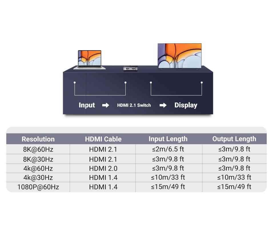 - Support 8K@60hz, 4K@120hz, 1080P@240Hz resolution