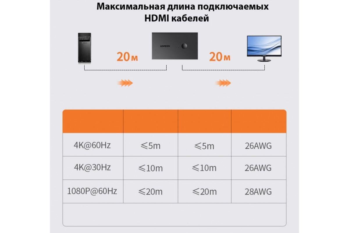 Thông số kĩ thuật bộ gộp-chia HDMI 2 chiều Ugreen 50966 hỗ trợ 4K2K@30Hz - Hãng SX : Ugreen - Mã SP : 50966 - Màu sắc : Đen - Đầu vào : 2 HDMI