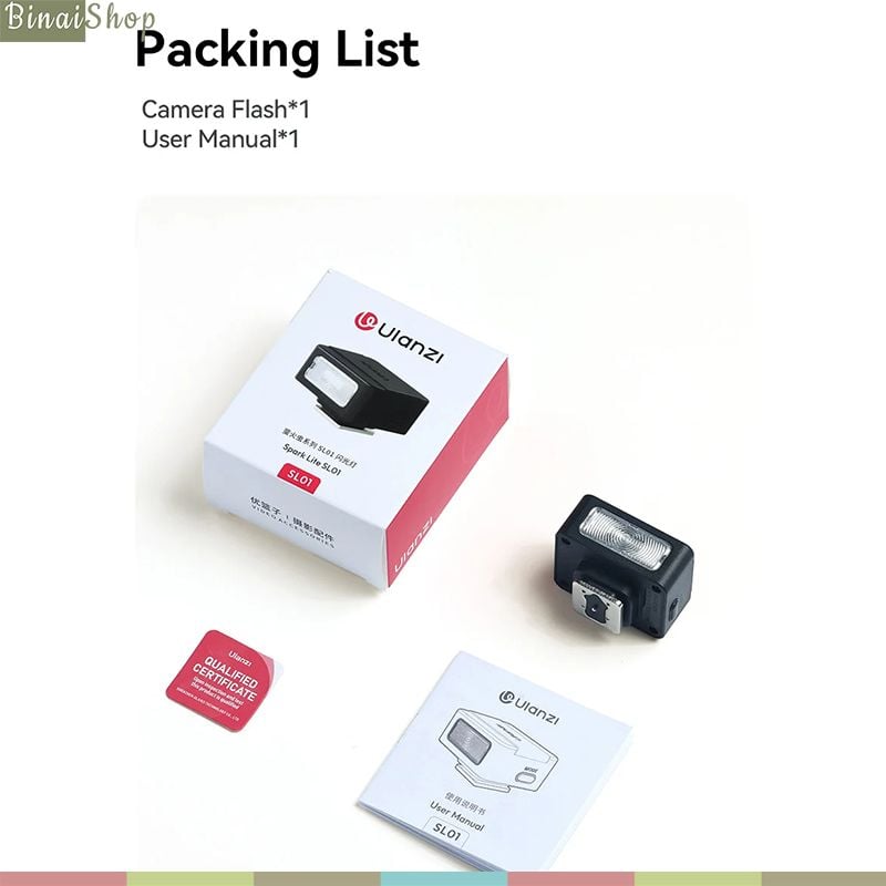 - 01 Sách hướng dẫn THÔNG SỐ KỸ THUẬT BrandUlanziUlanziUlanziProduct ModelSL01SL02SL03Dimensions433528mm464320mm68×43×23mmWeight33g36g43 gCTT6500K+8%6500K+8%6500K ±8%CRI969697GNGN8 (ISO100)GN8 (ISO100)GN8(ISO100)Recycling Time 1/8 power: continuous flash;1/4 power: 2s; 1/2 power: 3s; 1/1 power: 5s 1/8 power: continuous flash;1/4 power: 2s; 1/2 power: 3s; 1/1 power: 5s1/8 power:continuous flash, 1/4 power:0.8s, 1/2 power:1.5s, 1/1 power:2.5sFlash Count375 flashes at 1/1 Power375 flashes at 1/1 Power500 flashes at 1/1 PowerCharging PortType-CType-CType-CCharging TimeApprox. 1 hour (5V/1A)Approx. 1 hour (5V/1A)Approx. 1 hour (5V/1A)Battery 250mAh 3.7V 250mAh 3.7V300 mAh Keyword: đèn flash máy ảnh, đèn flash, đèn flash chụp hình, phụ kiện chụp hình, phụ kiện máy ảnh, ulanzi SL01, ulanzi SL02, đèn flash ulanzi.