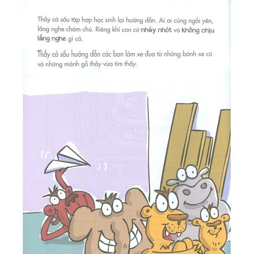 Cuốn “Khỉ con học cách lắng nghe” kể về một anh bạn khỉ con tinh nghịch cứ nhảy nhót lung tung, nói chuyện liên hồi khi thầy giáo hướng dẫn làm bài tập thực hành. Vì vậy, cậu ấy đã gặp nguy hiểm đấy, nhưng cũng nhờ đó mà cậu ấy đã học được bài học quan trọng: lắng nghe cực kì quan trọng.