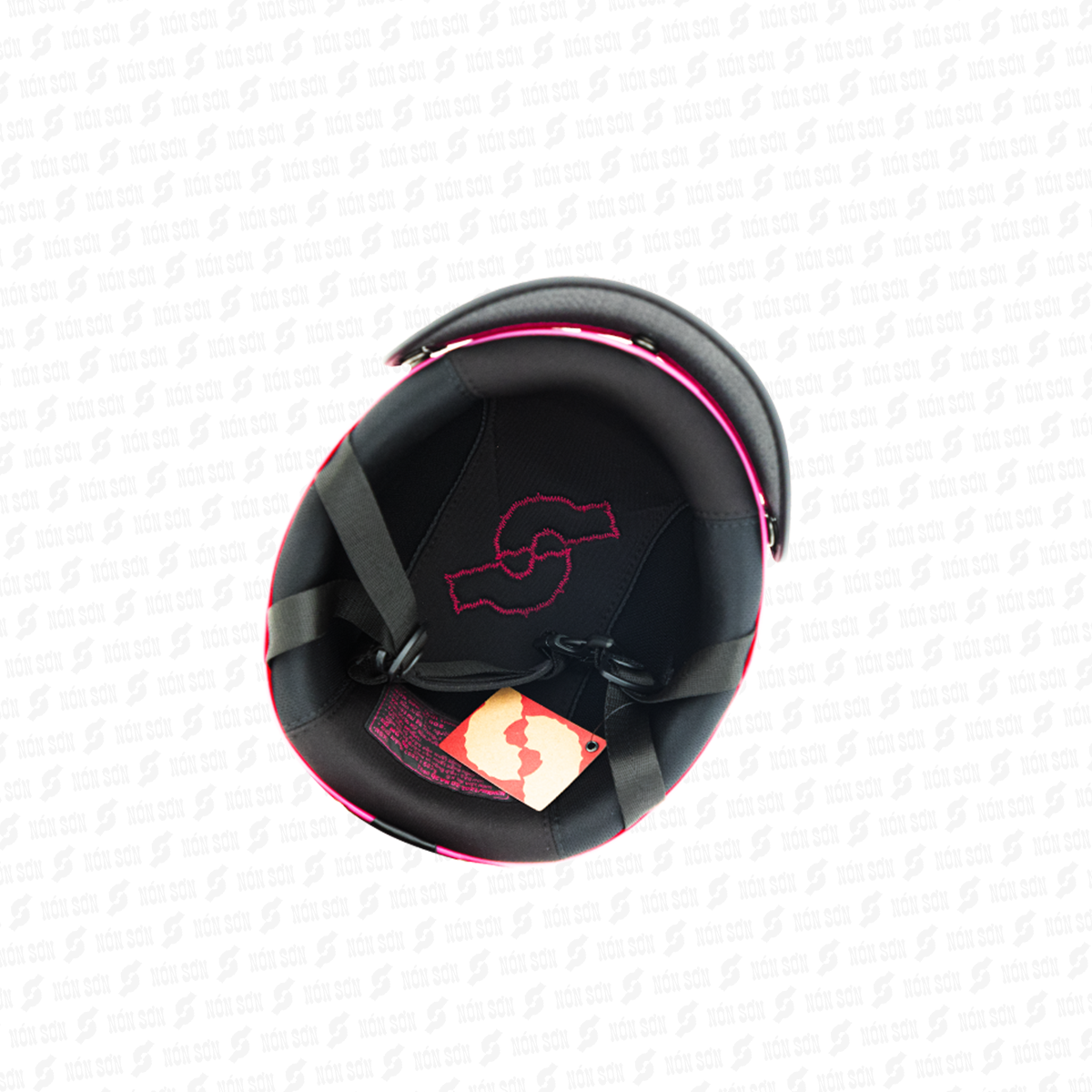 • Phần logo NÓN SƠN được gắn trên vỏ nón bảo hiểm Nón Sơn được làm từ da thật.