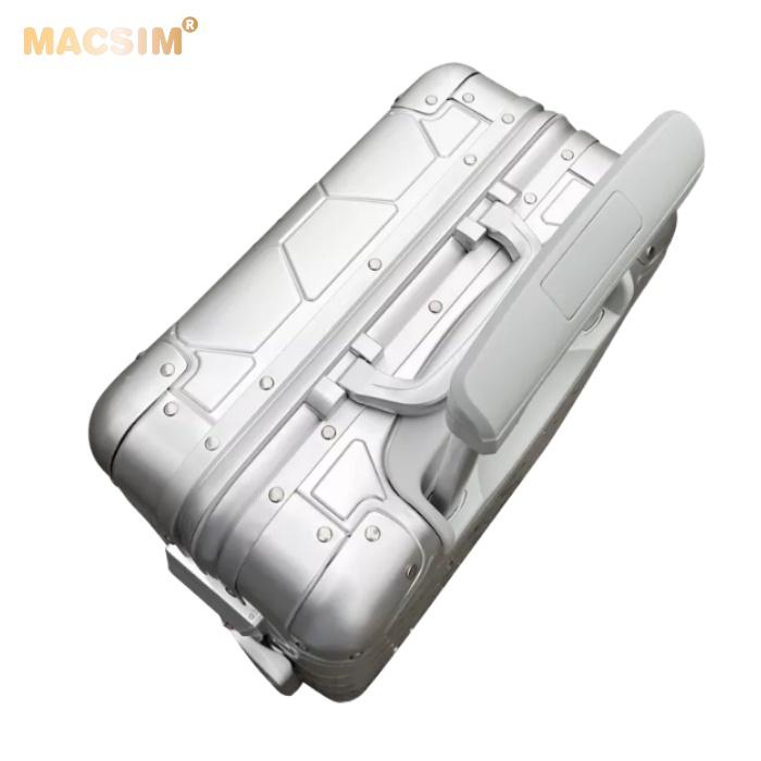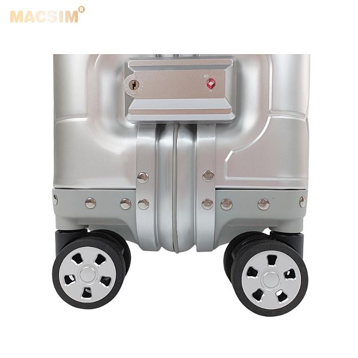 Toàn bộ thân vỏ vali Macsim làm bằng hợp kim nhôm A6063 làm cho vali rất nhẹ, độ đàn hồi cao, chống ăn mòn, chịu được tải trọng lớn.