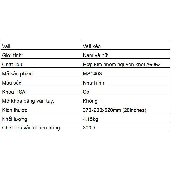 Vali hợp kim nhôm được làm từ nhôm nguyên chất kết hợp với: Silic, đồng, ạo ra sản phẩm có đặc tính vật lý trọng lượng nhẹ, độ cứng, đàn hồi, chống ăn mòn tốt.