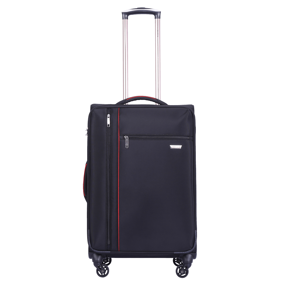 Vali Kéo Du Lịch đen Phối đỏ Có Nắp - 22 Inch được thiết kế từ chất liệu vải Polyester có độ bền cao, chống thấm nước tối ưu giúp bảo vệ hành lý bên