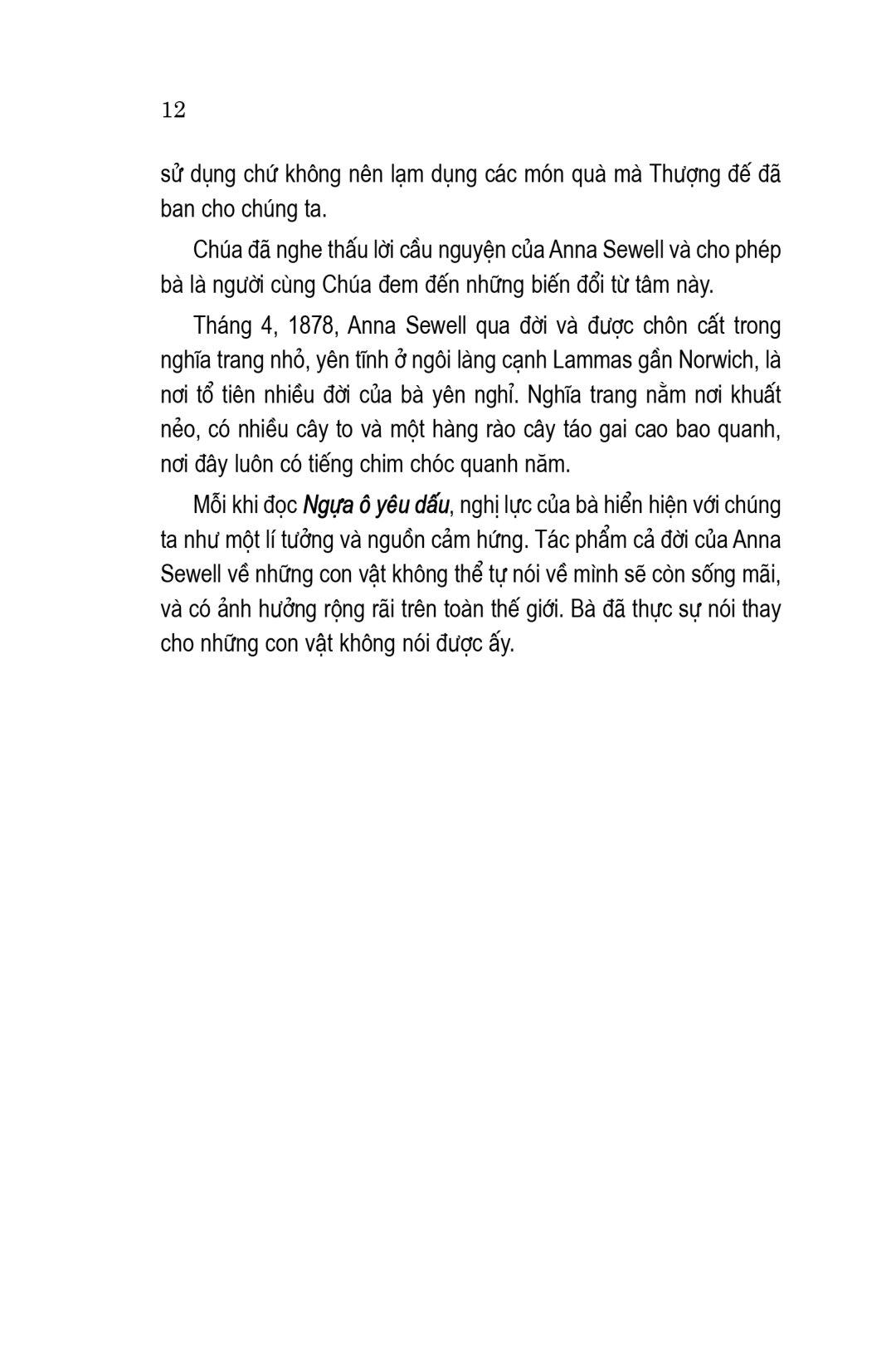 Anna Sewell là nữ văn sĩ người Anh. Trong suốt cuộc đời, bà chỉ cho ra đời một tác phẩm duy nhất ngay lập tức nó được liệt vào hàng kinh điển, đó chính là ngựa ô yêu dấu.