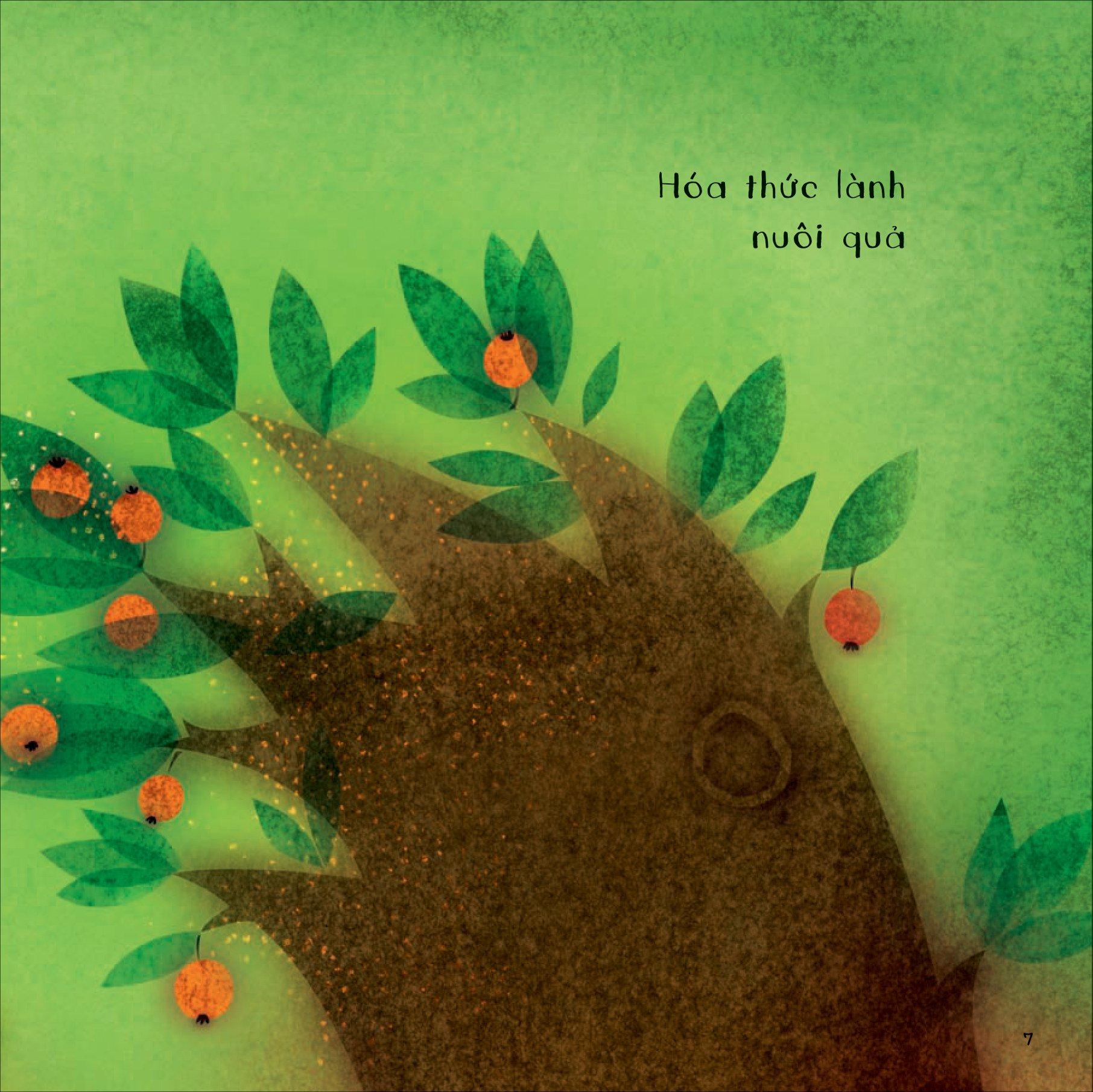 Mỗi trang sách đều chứa đựng lời thơ du dương, tranh vẽ tinh nghịch, màu sắc mộng mơ và kiến thức hữu ích. Bạn hãy lắng nghe Vạn vật thầm thì để biết đá có công dụng gì, lá làm được điều chi và nước hữu ích với đời sống ra sao nhé!