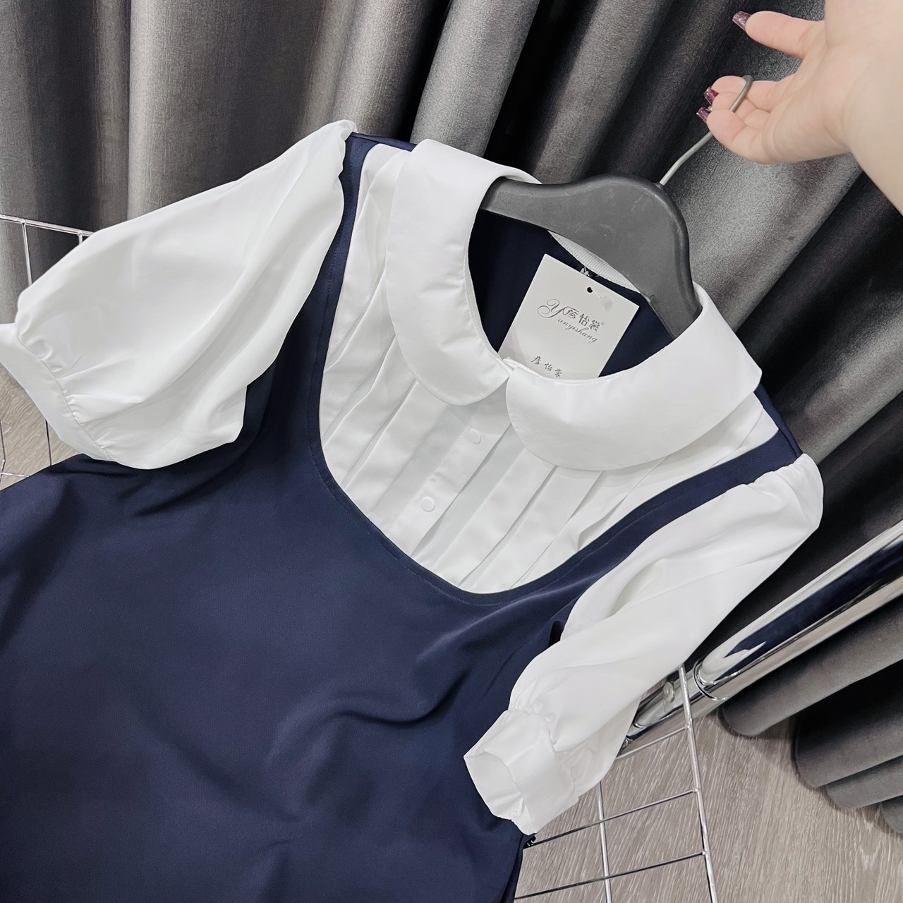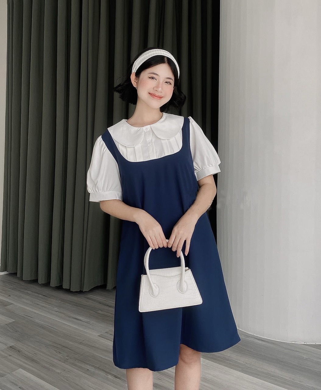 Váy bầu yếm liền thân phối cổ sơ mi đẹp, đầm yếm bầu công sở, MLEE SHOP