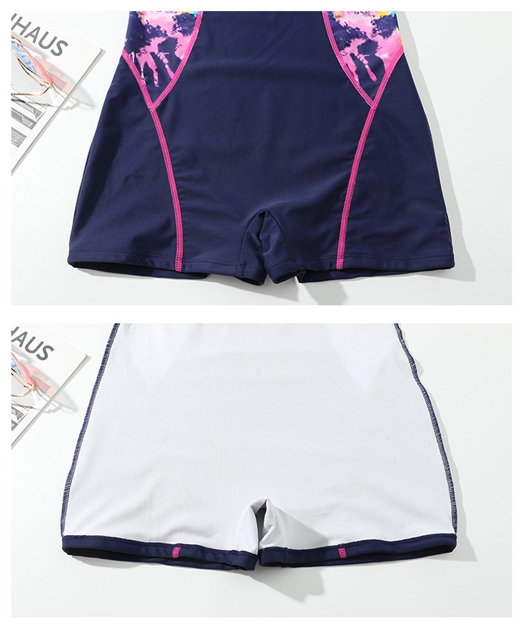 - Mẫu đồ bơi liền thân phong cách năng động tươi mới cho các cô gái trẻ trung. - Dáng cộc tay quần sooc đùi ôm gọn gàng cơ thể, khóa kéo trước tiện dụng