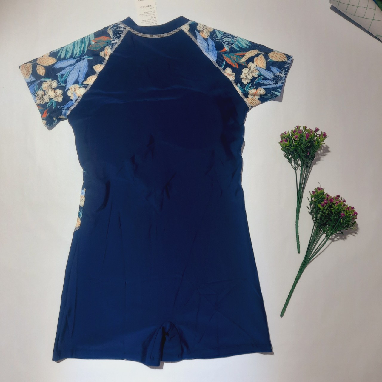 - Mẫu đồ bơi trung niên cho các mẹ, các bà với màu sắc trang nhã dễ mặc. - Dáng váy cộc tay kín đáo nhưng vẫn rất trẻ trung, cổ chữ V sang trọng.