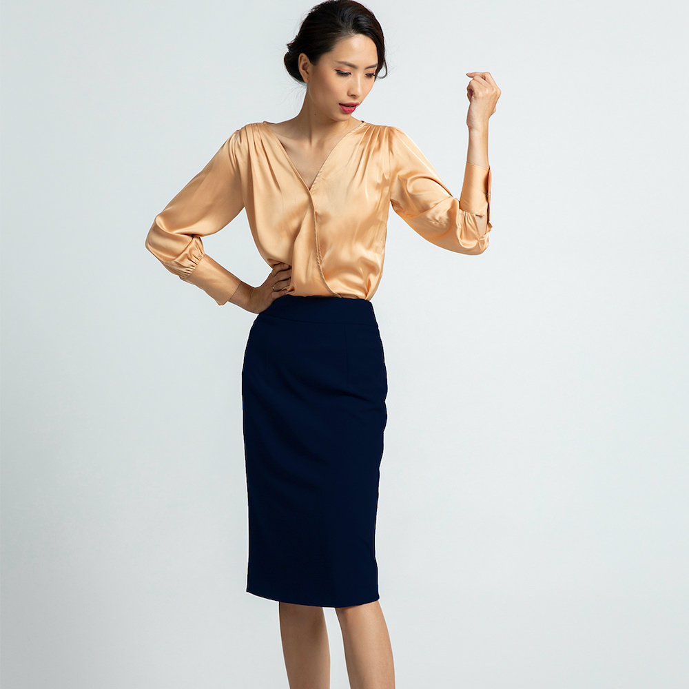 - dáng váy bút chì dài vừa qua gối